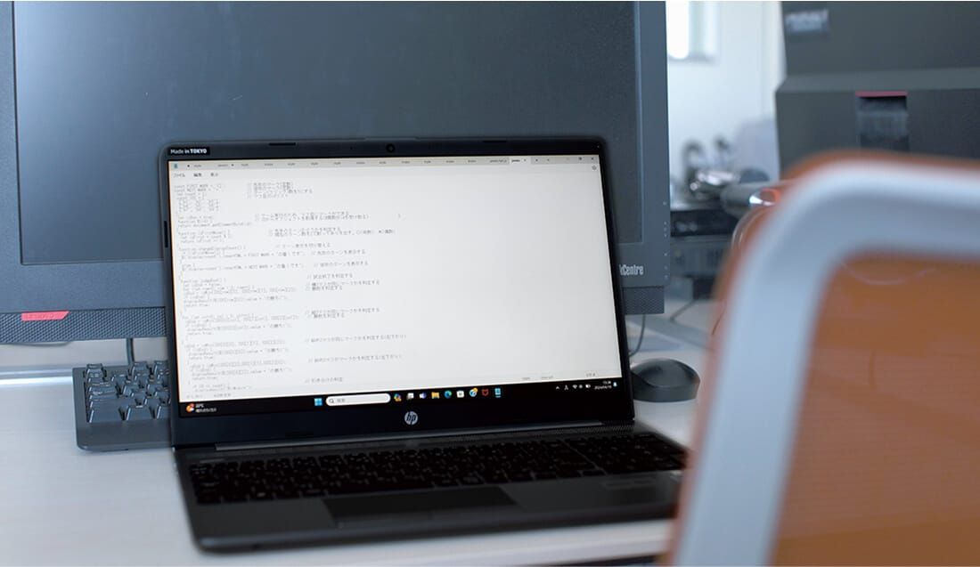 私は小学生の頃からプログラマーを目指していました。中学生になり、別の職業に就きたいと思った時期もありましたが、先生方の話を聞き、改めて情報の分野に興味を持ち、このコースを選びました。情報のコースでは実技と座学があり、実技のパソコンではWebページを作成したり、Excelを使って資格の勉強をします。