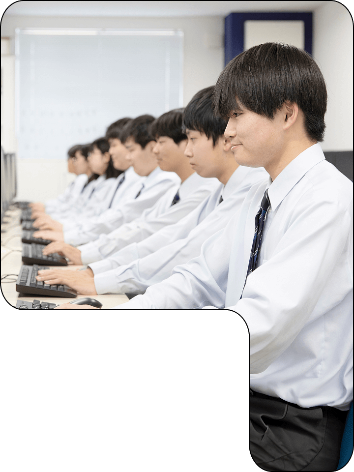 高度情報通信社会の現代で、ITという言葉は多く聞くことになったと思います。IT系企業でなくても情報活用能力を活かしたうえでの業務は多くの企業で求められます。このコースでは情報の専門的な技術を幅広く学び、IT系企業ではもちろん、それ以外の企業でも求められるような技術を得ることができます。私はこのコースでIPAが定める国家資格であるITパスポートに合格し、専門学校に進学後、基本情報技術者まで取得しました。就職後には本校で学んだことを活かし、IT系企業でプログラマとして努力しています。簡単な分野ではありませんが、"できない"から、"できた"になった時の達成感などを周りの人と共有する気持ちはとても嬉しいものがあります。自分ができることの幅を、このコースで伸ばしていってほしいと思います。