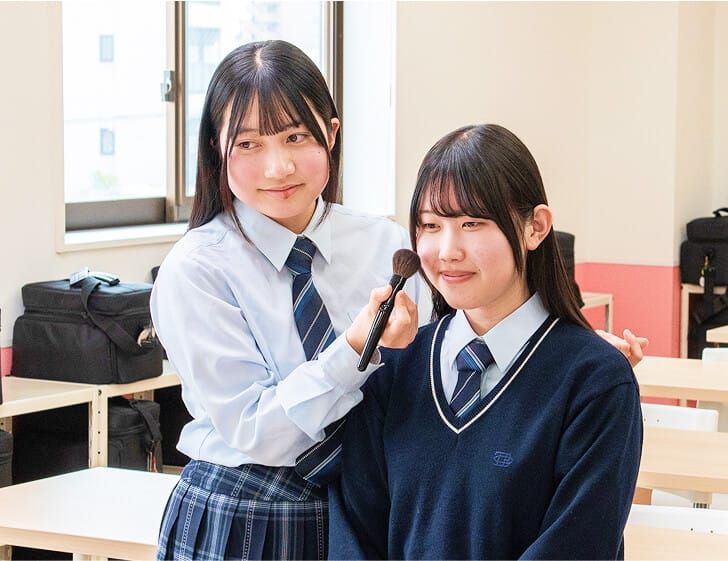 ネイル実習では、爪の健康を守るケアや基礎的なカラーリングの正しいテクニックを練習し、爪をきれいに整える方法から用具の使い方まで学びます。また、メイク実習では検定取得を目指してスキンケアやポイントメイクを基礎から丁寧に教えます。