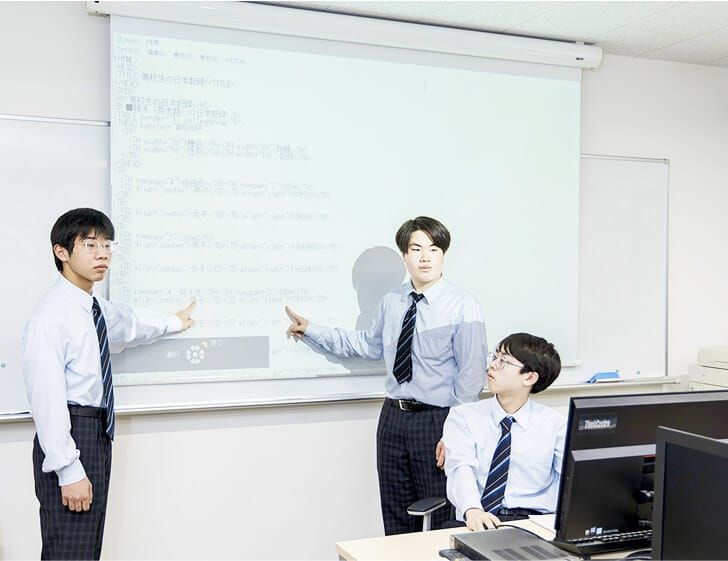 アルゴリズムや流れ図を理解し、正しいプログラミング技術を習得します。また、時代に対応したプログラミング言語を学習し、将来役立つ知識を身につけます。
