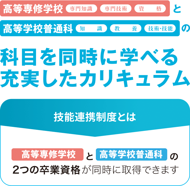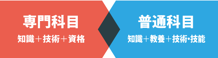 本校は、基礎・基本を重視した教育実践の上に、生徒一人ひとりの個性を伸ばす教育をしております。また、6つのコースからひとつを選択して、専門科目の学習を行い、様々な資格取得を目指して、実社会で対応できる知識と技能・技術を身につける学習を行います。