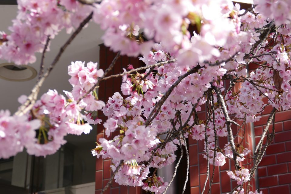 校舎前の桜が満開です