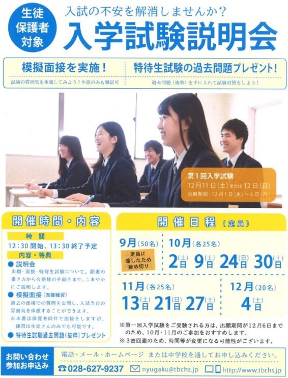 入試説明会の申込はお早めに!