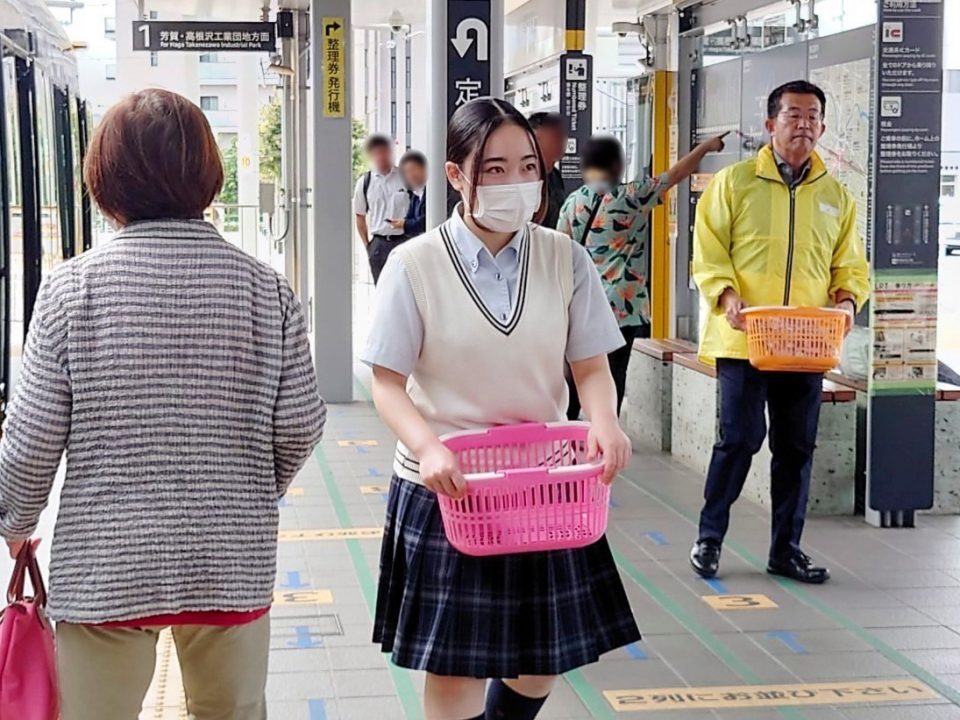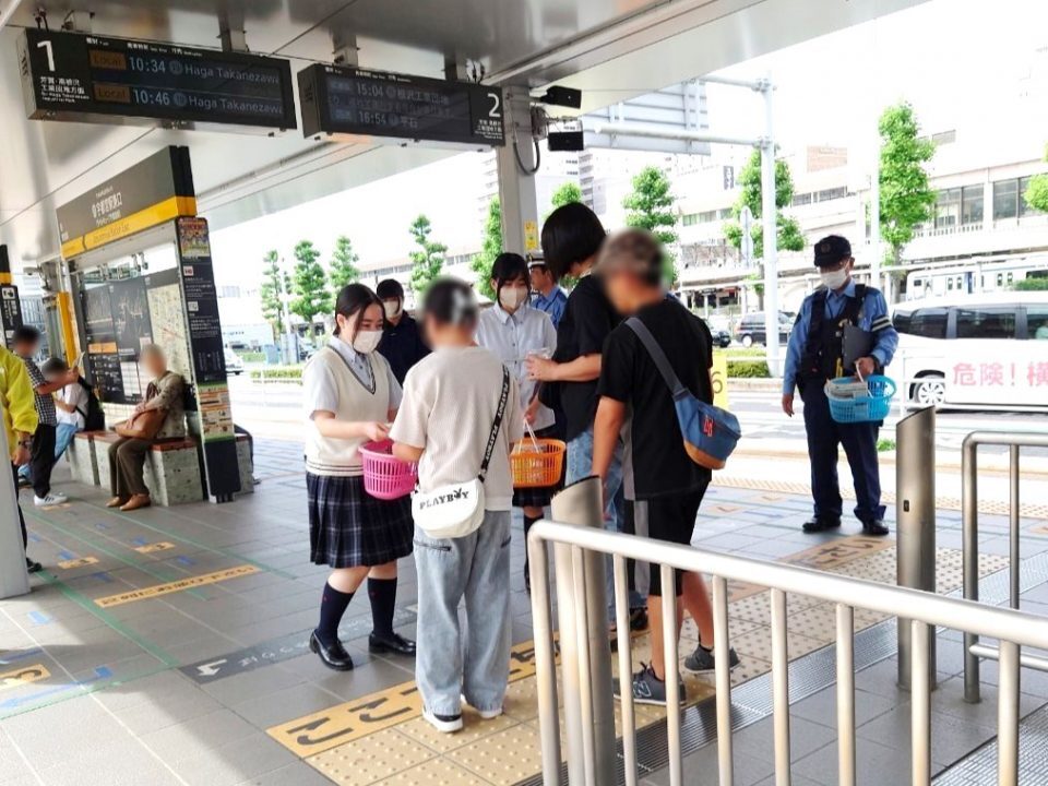 JR宇都宮駅東口LRT付近で、生徒会中心に参加しました。