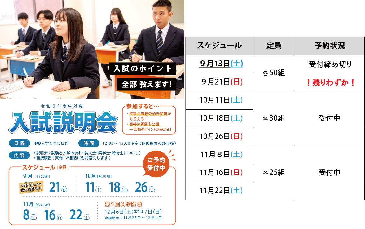 学校説明会・体験授業(10:00~12:00)につきましては、